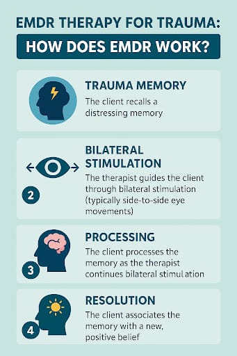EMDR therapy is a clinically-proven way to heal trauma and restore emotional wellness. It targets unprocessed memories and uses bilateral stimulation to allow the mind to naturally reprocess the experience without the emotional distress, reducing the emotional charge and allowing for adaptive thinking about the past.Â