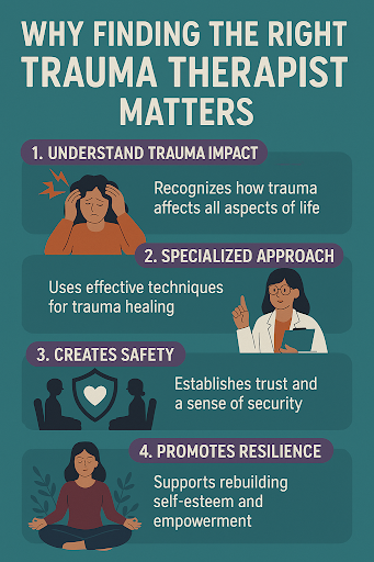 Finding the right trauma therapist is an integral step in healing because not all mental health specialists are trained or have the skills to work with people with trauma.Â